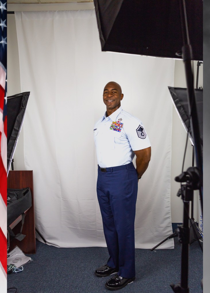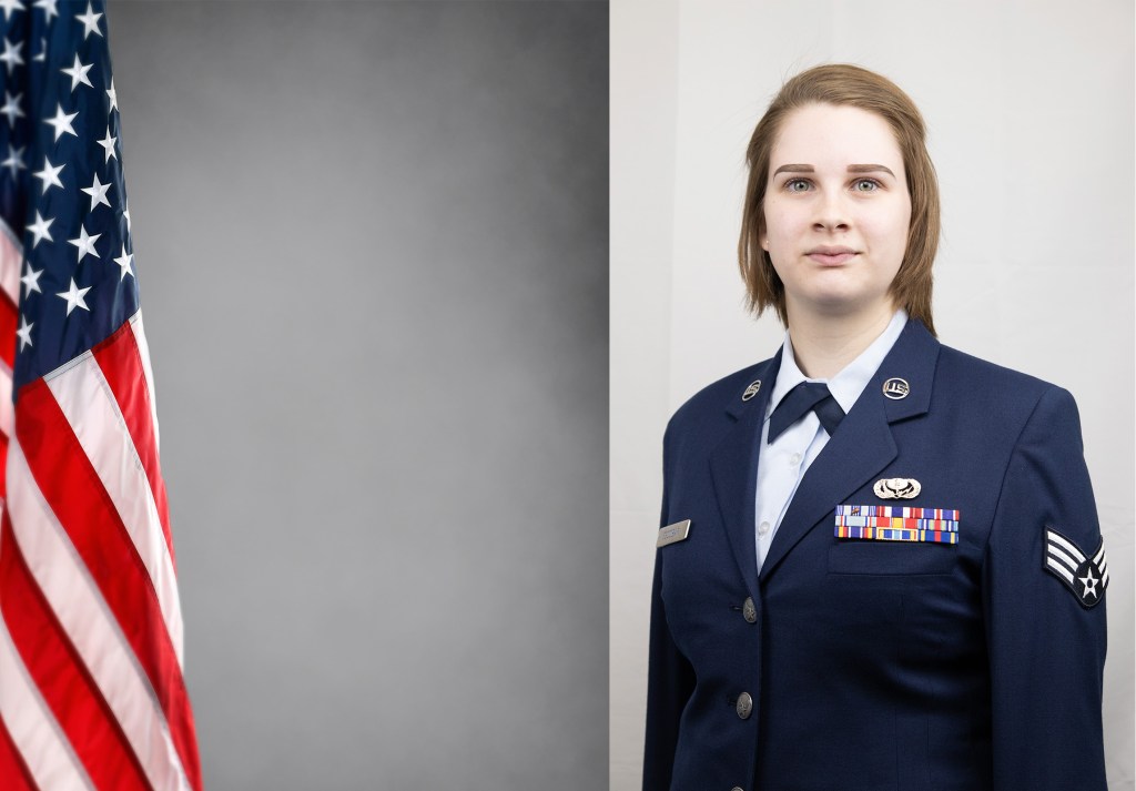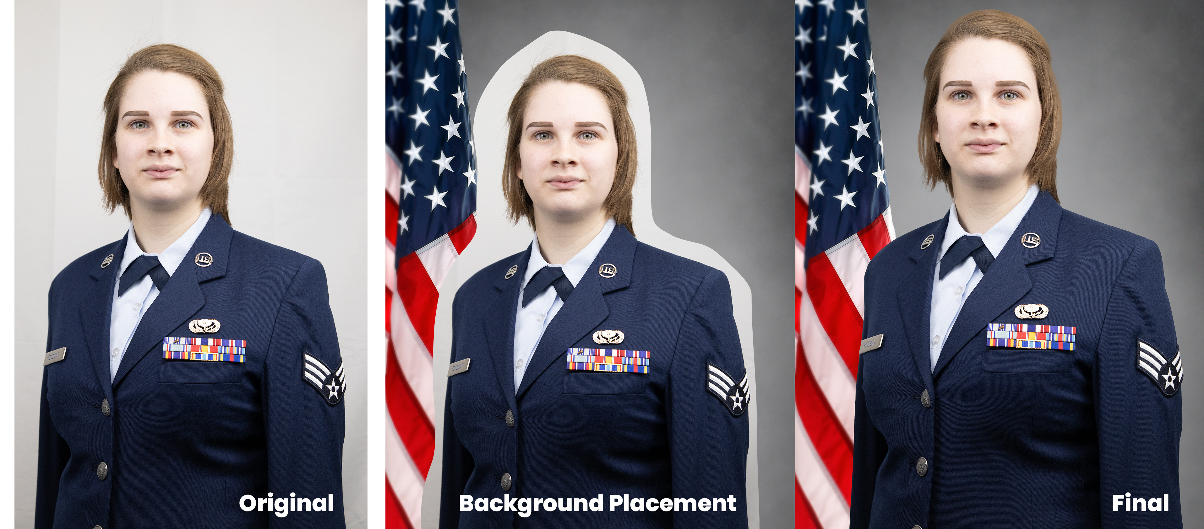 Easily replaced the white sheet and placed her into a professional Air Force studio!
